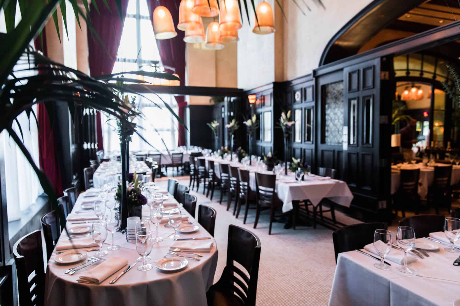 The reception is in the Café Les Halle room in Mon Ami Gabi. Arrive at 12 p.m. for appetizers, and lunch service begins at 12:30